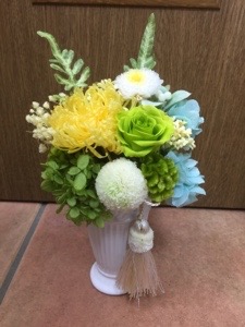 2015年5月5日 / 最終更新日時 : 2015年5月5日 アトリエAOI AOIのひとこと お仏壇の花 ご主人様を亡くされたのですが 毎日の水替えが困難な為、プリザーブドフラワーをご依頼されました。 亡くされたばかりなので 優しいグリーン系でまとめてみました。 今菊も色々な種類があり、生きた花のようです。 コメントを残す コメントをキャンセルメールアドレスが公開されることはありません。 ※ が付いている欄は必須項目ですコメント ※ 名前 ※ メール ※ サイト 次回のコメントで使用するためブラウザーに自分の名前、メールアドレス、サイトを保存する。 Δ