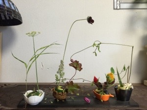 お花の懐石料理のようで 楽しめるお稽古だと思います。季節ごとに 庭の花を切ってさりげなく 飾るのにとても適したデザインだと思います。