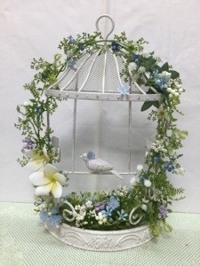 忘れな草ガーランドという可愛らしい小花を使って アレンジしていきます。