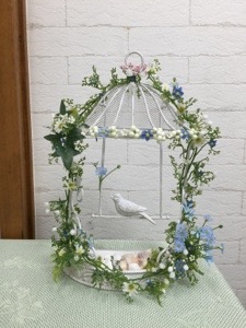 春に使った鳥かごをアーティフィシャルで アレンジです。