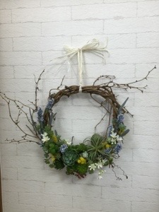 今旬の多肉植物を使ったリースに致しました。なかなか素敵な仕上がりになっています。