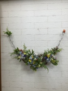 もう一方は やはりワイヤースワッグに春らしい小花をアレンジしていきました。各の性格が作品にも出るので 好みというものは 面白いなといつも感じます。