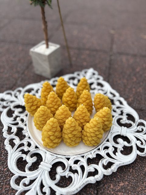 2025年11月15日 / 最終更新日時 : 2025年11月15日 アトリエAOI お知らせ 蜜蝋キャンドルを作りました♪ 友人が養蜂家の家に嫁ぎ、蜜蝋を作ったので 使ってみないかと声をかけていただき、初めて購入してみました。 松ぼっくりモールを1つしか用意しなかったので 大変時間が掛かりました。でも可愛い松ぼっくり蜜蝋キャンドルが出来ました🎶