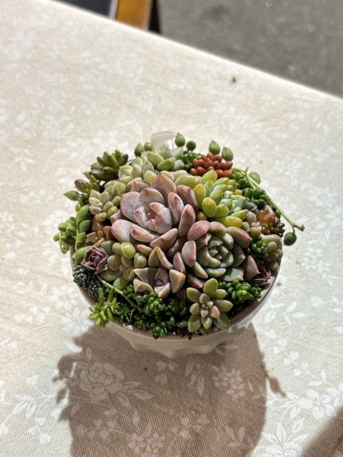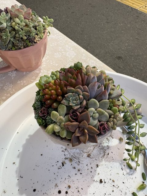 今日は追浜で多肉植物の寄せ植えワークショップやステンドグラスのサボテン🌵・Christmas wreath・スワッグ等々の販売をしてきました。