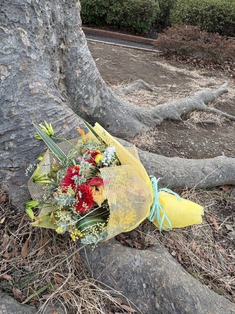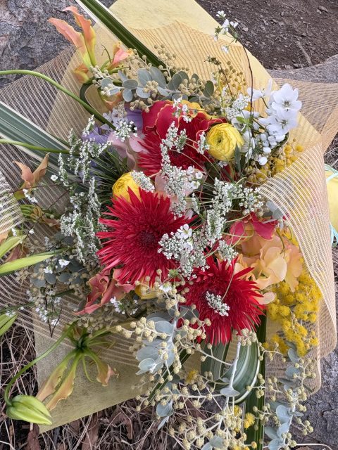 2026年2月15日 / 最終更新日時 : 2026年2月15日 アトリエAOI お知らせ お誕生日の花束のご依頼 春らしいお花でという事で ミモザ・雪柳にスイートピーお祝い花にグロリオサとスパイダーという名前のガーベラを合わせてみました